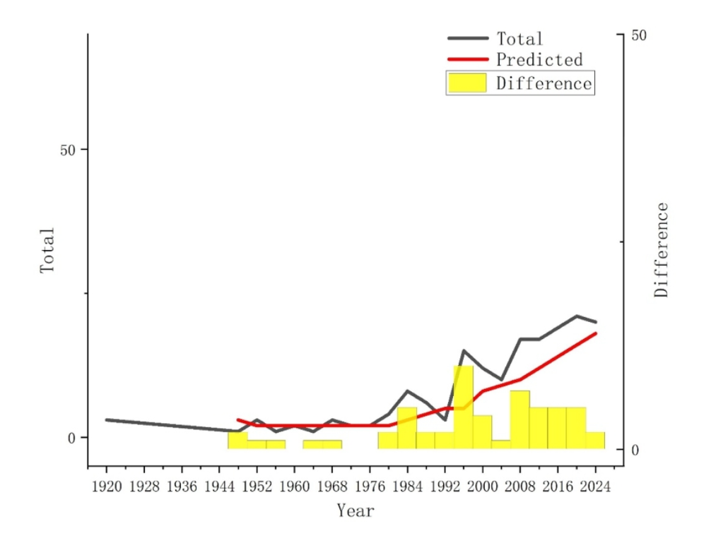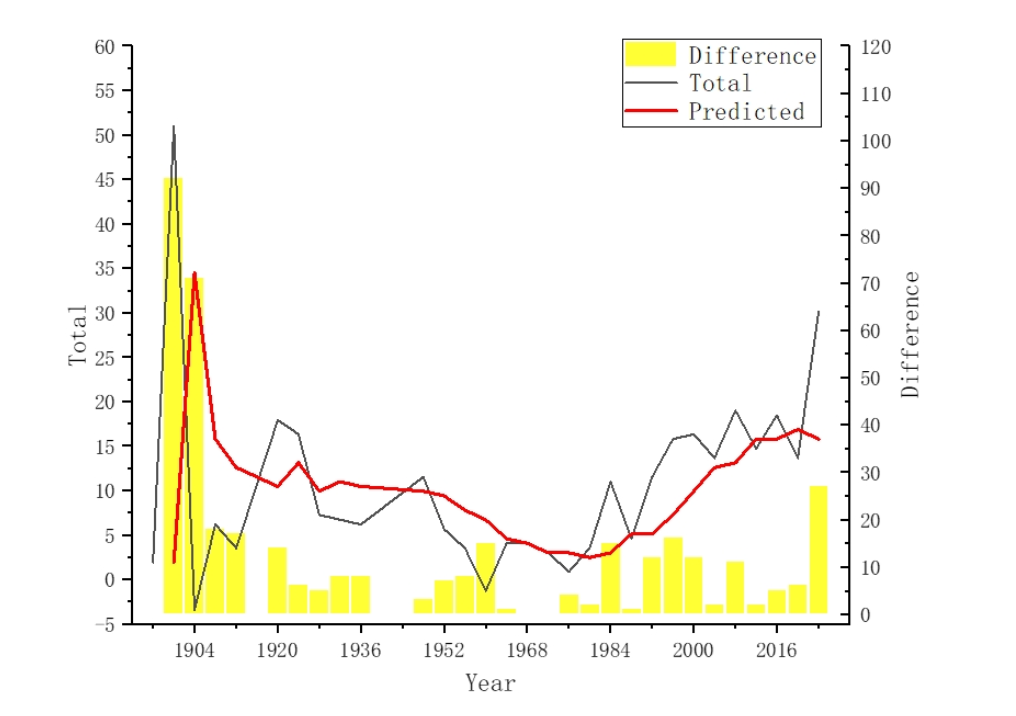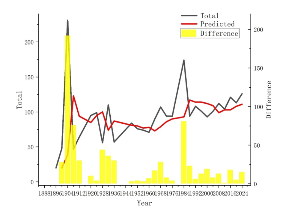 2020年东京奥运会(2021年举办)的实际奖牌表现与预测值高度一致,没有出现东道国奖牌数的"异常峰值"。这种"正常"实际上是"异常"。据推测,COVID-19疫情抑制了东道国的增益效应,从而"抵消"了优势。这表明战争、疫情等重大事件可能抵消东道主效应,应在未来预测模型中作为重要因素考虑。