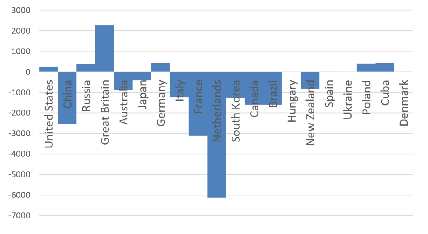 使用我们先前分析中这些国家2028年的预测奖牌结果,我们可以估算其国家实力如下: